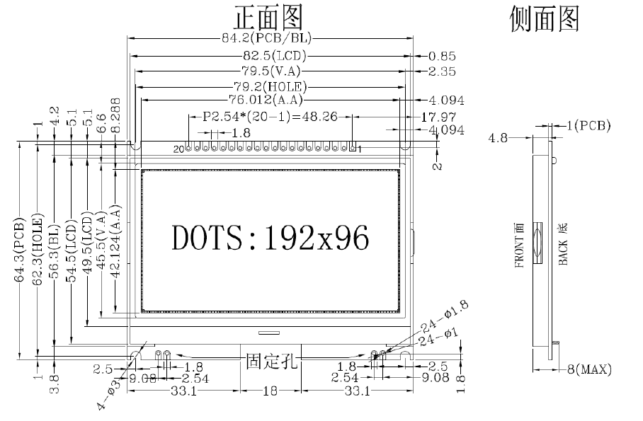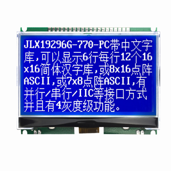 ●或显示12 个×6 行=72 个的16*16 点阵的汉字,按照24*12 点阵汉字来计算可显示8字/行*8 行。