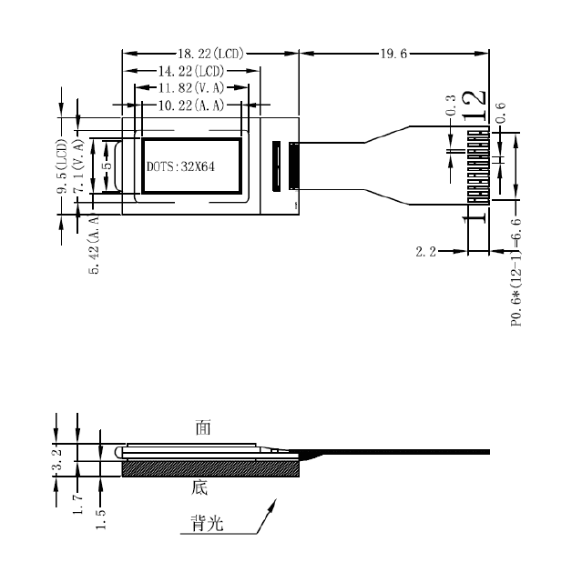3.功耗低: 不带背光 1mW(3.3V*0.3mA),带背光不大于 35mW(3.3V*10mA);
