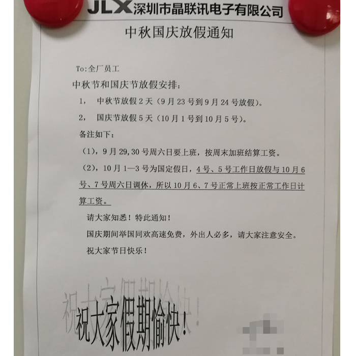 公司放假安排:国庆节放假5天(10月1号-10月5号)