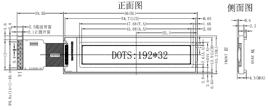 3. 功耗低: 不带背光1mW(3.3V*0.3mA),带背光不大于51mW(3.3V*15mA);
