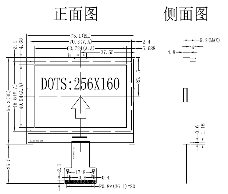 2. IC 采用矽创公司ST75256,功能强大,稳定性好