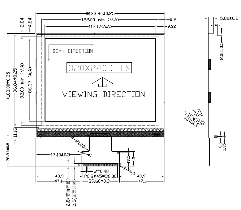 4. 接口简单方便:可采用4 线SPI 串行接口、并行接口,I2C 接口。