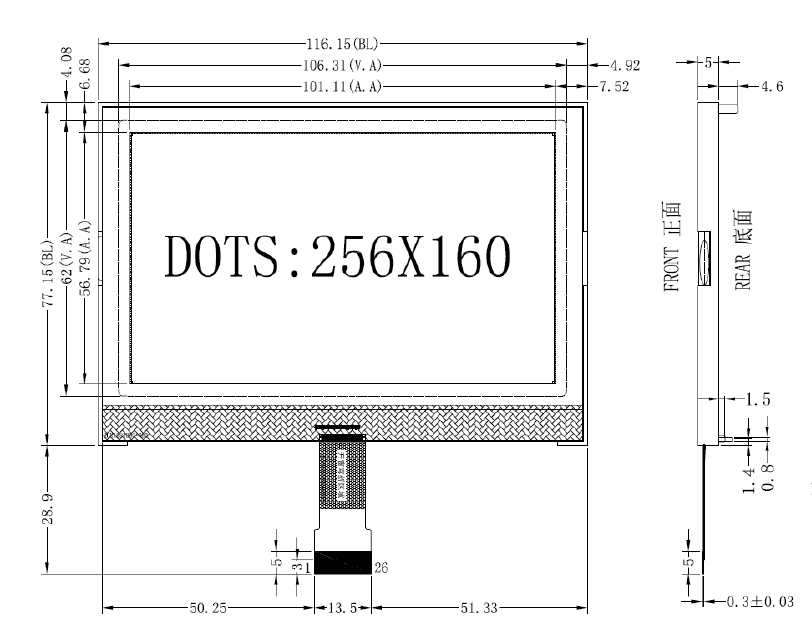 2. IC 采用矽创公司ST75256,功能强大,稳定性好