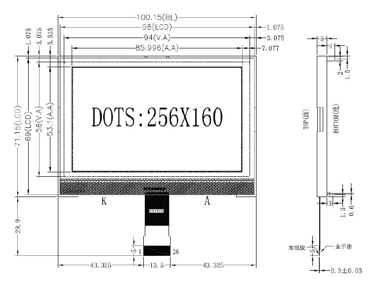 2. IC 采用矽创公司ST75256,功能强大,稳定性好
