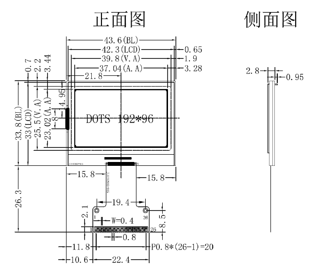3. 功耗低: 不带背光3.8mW(3.3V*(1.05mA 测试最大值)),带背光不大于153mW(3.3V*46mA);