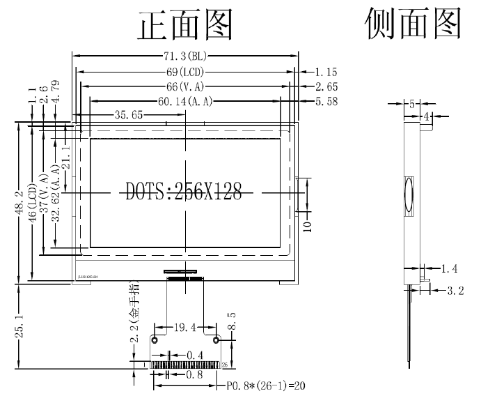2. IC采用矽创公司ST75256,功能强大,稳定性好