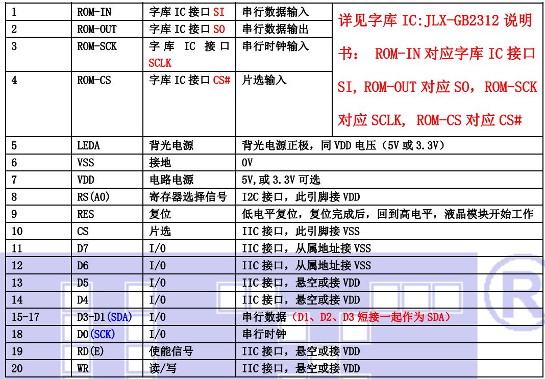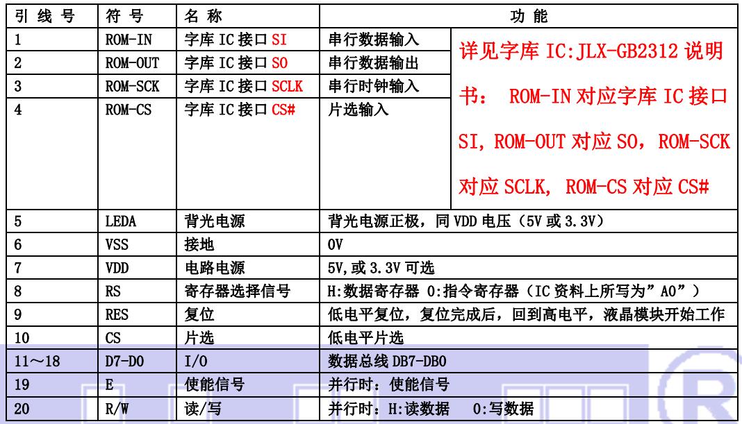 (1)并行时接口引脚功能