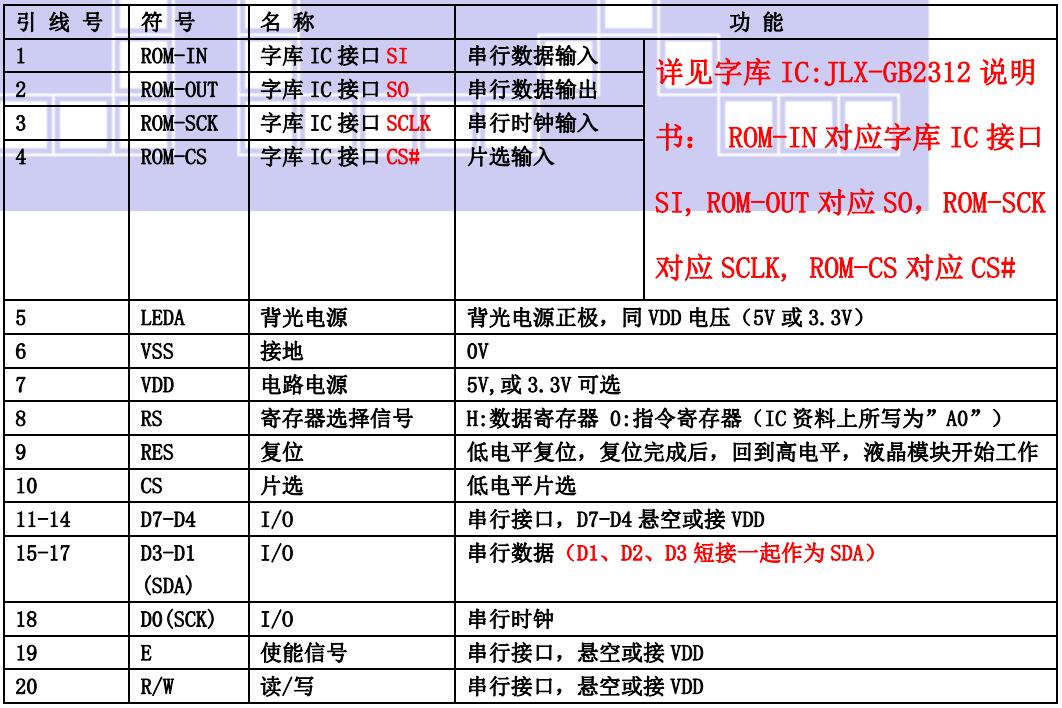 (2)四线串行时接口引脚功能