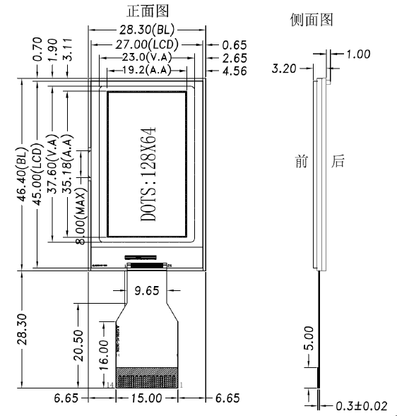 3.功耗低: 不带背光 1mW(3.3V*0.3mA),带背光不大于 150mW(3.3V*45mA);