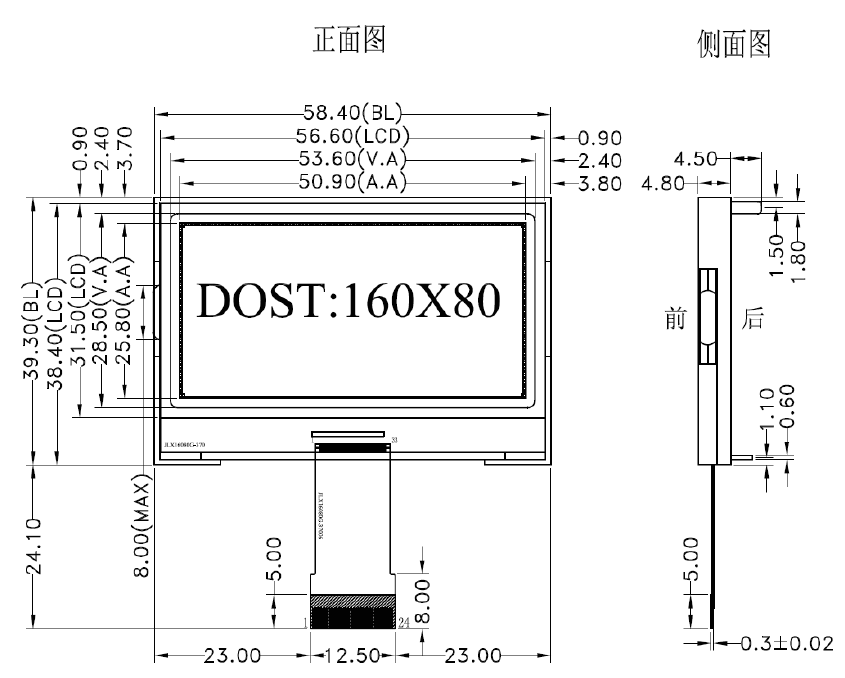 5.指令功能强: 可软件调对比度、行列扫描方向可改(可旋转180 度使用);
