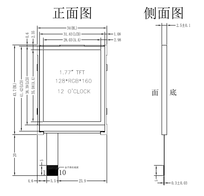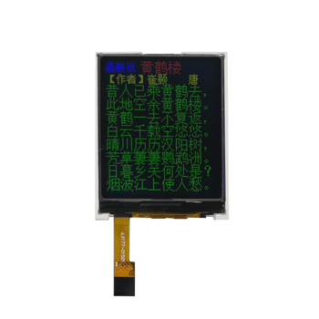 1.结构轻、薄、带背光、插接式FPC。 2. IC 采用ST7735S,功能强大,稳定性好 3. 指令功能强:例如可以用指令控制显示内容顺时针旋转90、逆时针旋转90°或倒立竖放。 4.接口简单方便:采用4_SPI 串口。 5. 工作温度宽:-20℃ - 70℃; 6. 储存温度宽:-30℃ - 80℃;